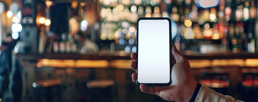 Vibrant cocktail held against bar backdrop for nightlife promotion