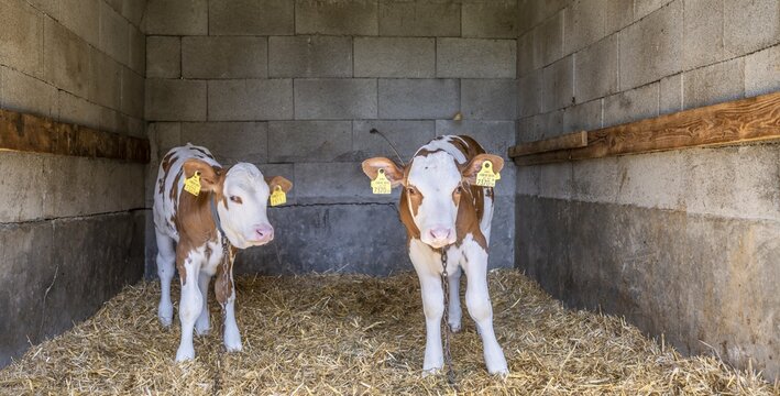 Two calves in the stable, Salzburger Land, Austria