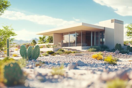 Modernist desert home, with copy space