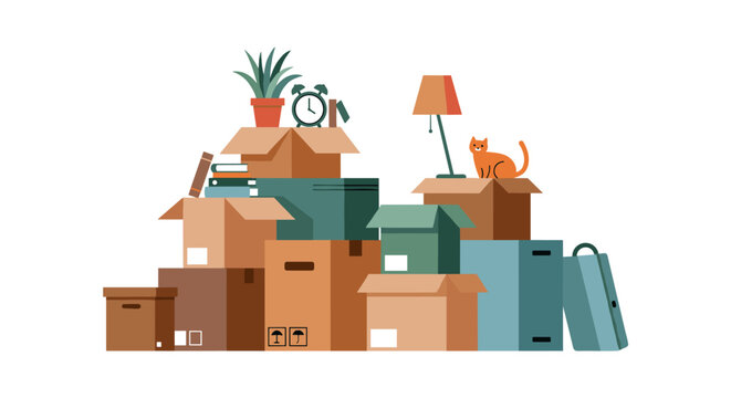 3D illustration background of cardboard boxes. Heap of cardboard boxes for the delivery of goods, parcels. Warehouse filled with boxes. Packages delivery, parcels transportation system concept.
