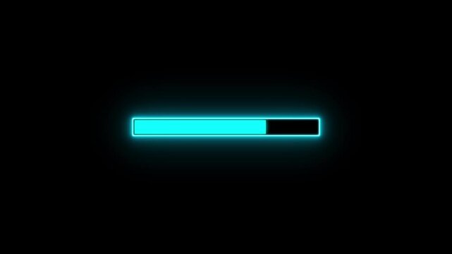 Glowing neon-style loading bar animation isolated on black background, waiting, processing concept