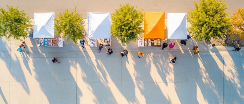 Vibrant Community Health Fair Modern Tents in Breezy Outdoor Setup with Informative Booths - Community Engagement and Wellness Outreach for Local Health Promotion