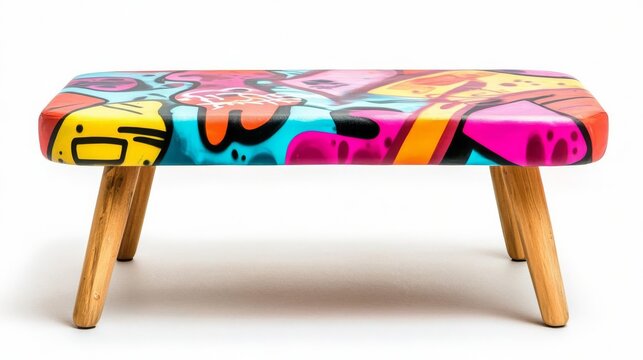 Graffiti-covered bistro coffee table, urban street-art cafe theme