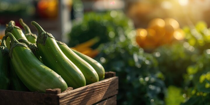 Fresh green eggplant at market, emphasizing seasonal produce and local agriculture