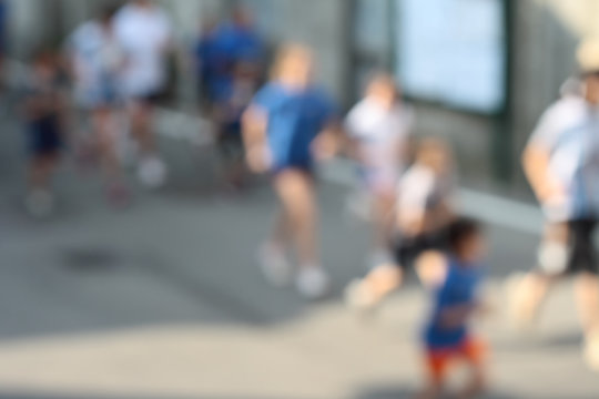 Running race action in urban city sports dynamic environment ground level perspective for fitness enthusiasts