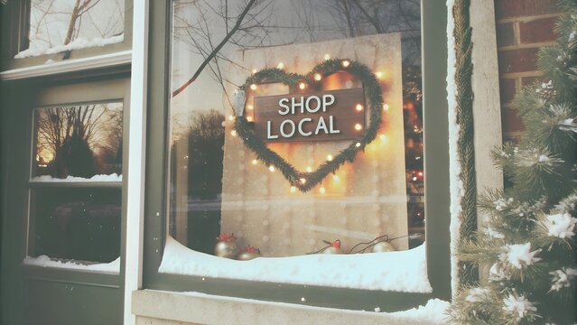 Christmas themed shop window showcases local shopping spirit and winter charm