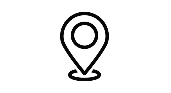 Black outline map pin icon with concentric circles, representing location, navigation, destination, and point of interest.