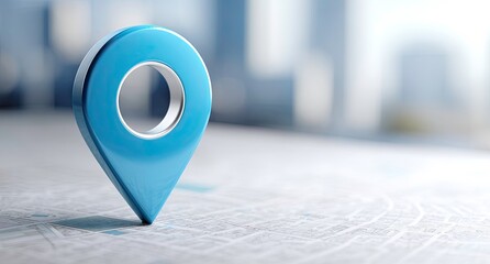 Blue Location Pin on City Map with Blurred Background for Navigation