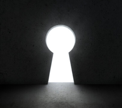 Wall with key hole light shines from. Dream, success, opportunity. concept business