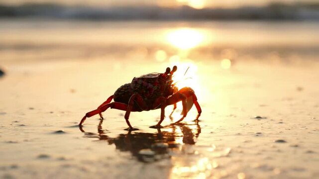 Intricate Crustacean Behavior: Detailed observation of a crab's unique locomotion and interaction with its immediate surroundings, such as digging or climbing over rocks.