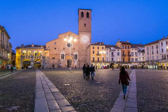 Lodi - The cathedral  - Cattedrale della Vergine Assunta and Piazza della Vittoria at dusk