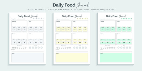 Daily food journal and planner logbook notebook tracker printable kdp interior design template
