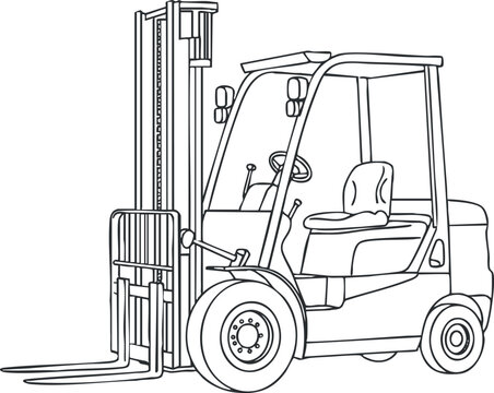 Outline vector illustration of a forklift vehicle designed for material handling and logistics applications