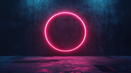Futuristic neon glowing symbol or logo set against a dark grunge backdrop