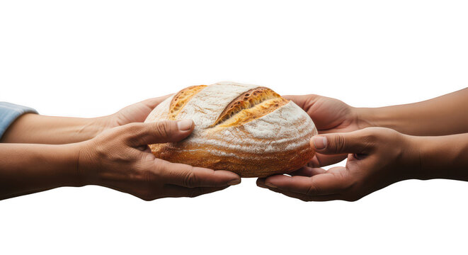 Two Hands Sharing Artisan Loaf of Freshly Baked Bread