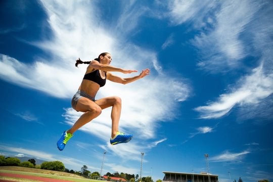 Female athlete competing on the "long jump" event