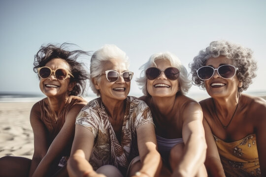 Elderly people enjoy company on sunny summer beach