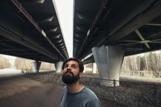 Surf enthusiast looking at ocean on south beach coastal getaway