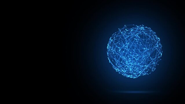 3D animation of future shape a rotating neon blue transparent sphere from lines and dots, 4K abstract geometric animated background