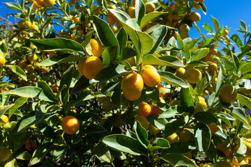 Close-up view of loquat trees in a loquat orchard