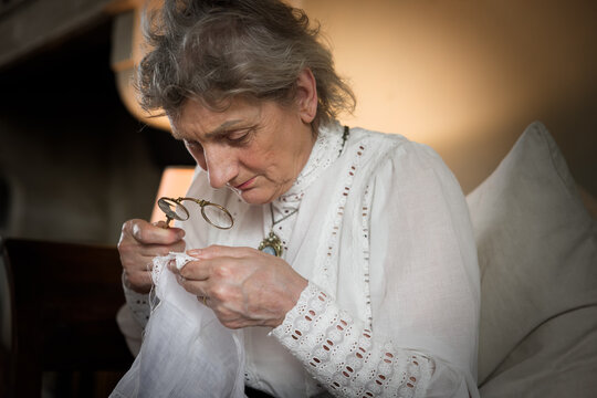 Edwardian lady using a lorgnette