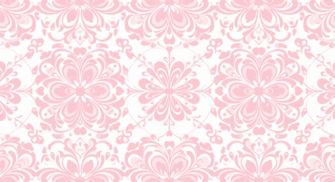 Abstract floral vector illustration with pink lotus blossoms and vintage leaf patterns