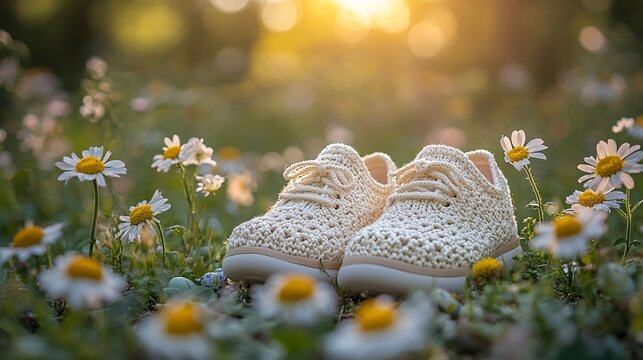Soft Neutral Scene for Pregnancy Reveal with Adorable Crochet Shoes