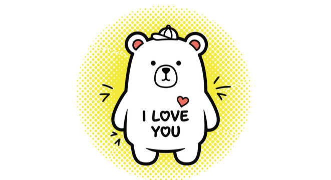 A cute cartoon white bear wearing a cap, expressing love with \.