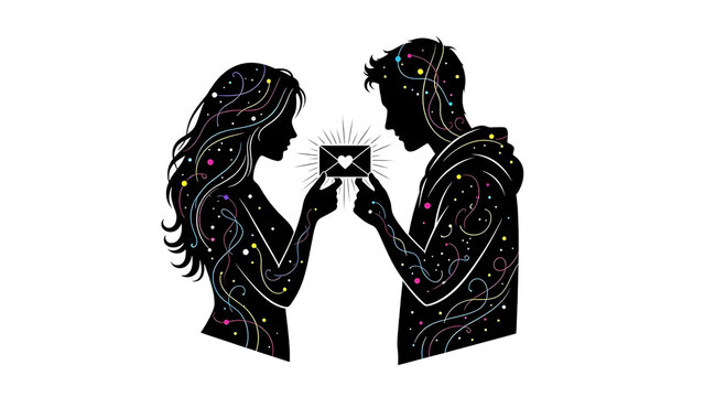 Romantic snowy gift exchange radiates warmth during the holiday season with love and joy.