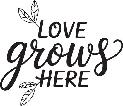 Elegant Calligraphy Art: Love Grows Here Decorative Design.