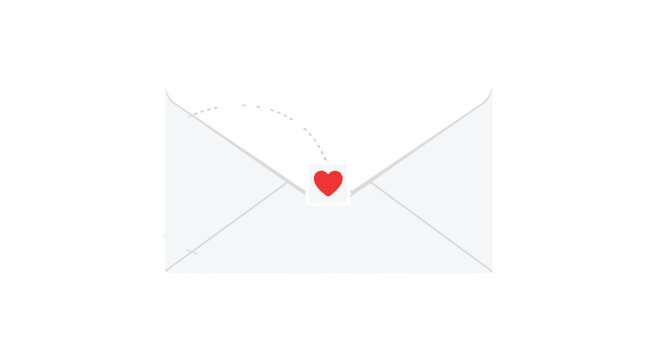 Delivering heartfelt sentiment: A minimalistic illustration of a love letter with a red heart sealing the message of affection and care