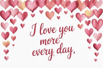 Soft pastel pink hearts scattered on a clean white background, symbolizing love and affection.
