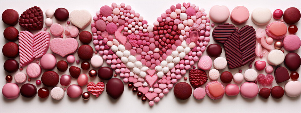 Romantic heart-shaped candies with valentine's day phrases