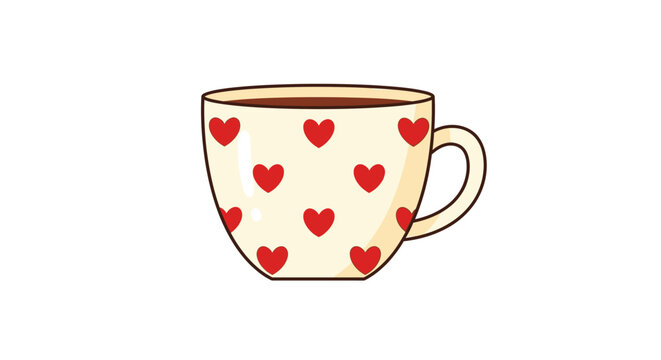 Charming mug illustration displaying red hearts, perfect for love themed coffee break visuals