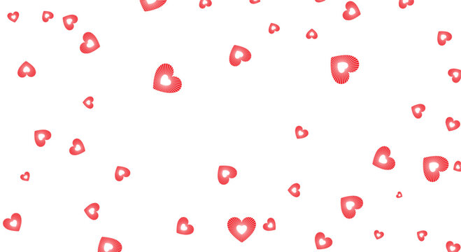 Romantic falling red heart confetti on white background. Minimalist flat vector illustration pattern for Valentine's Day, wedding celebrations, love themes, and decorative wallpaper design.