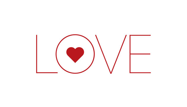 Red valentine word love with small and big hearts. An idea for a banner or card.