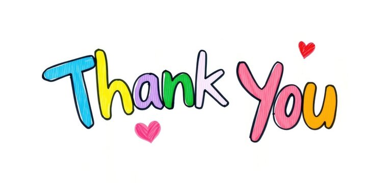 Brightly colored thank you banner with playful lettering and heart designs. Ideal for celebrations, events, or expressing appreciation to loved ones