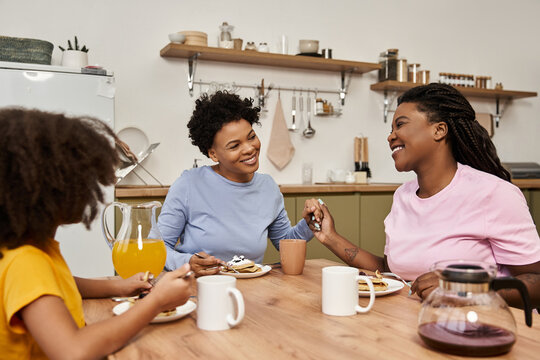 Family bonding over breakfast in a cozy kitchen with love and laughter