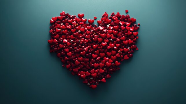 A colorful collection of heart-shaped balloons drapes elegantly across a soft pink background, creating a loving and cheerful atmosphere for any special occasion