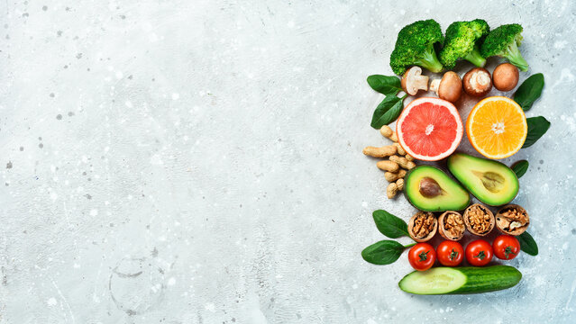 Colorful superfoods arrangement for healthy living promotion