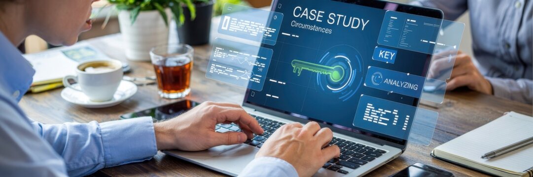 Person working on a case study on a laptop.