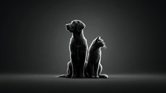 Silhouettes of a dog and cat standing back to back, representing loyalty and companionship