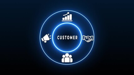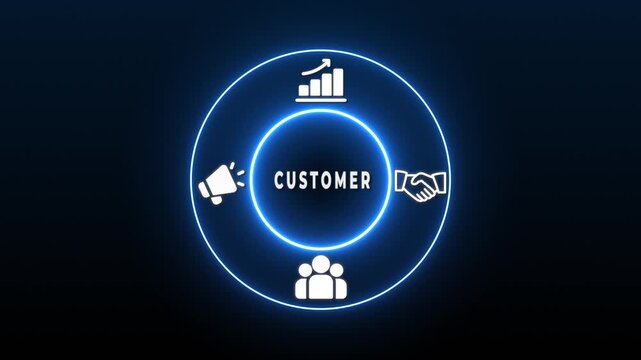 Neon Circle with Business Icons and the Words Customer- Loyalty in the Center customer loyalty retention