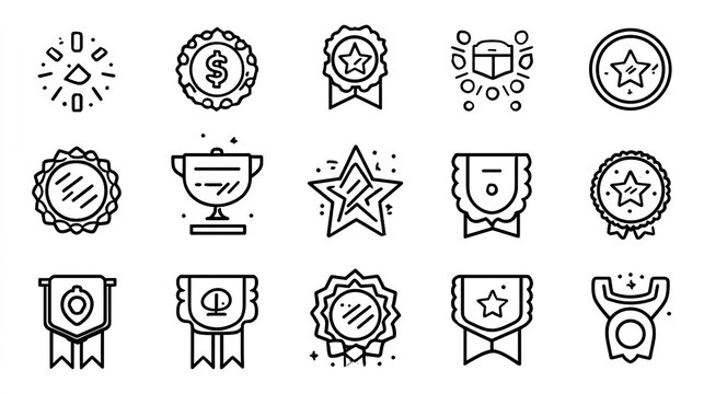 Bonus Outline icon set. Containing benefit, reward, bonus, badge, award, star, and more. Editable stroke. Vector illustration