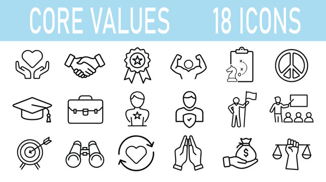 Core Values Vector Icon Set | Outline | Integrity, Trust, Leadership, Education, Equality