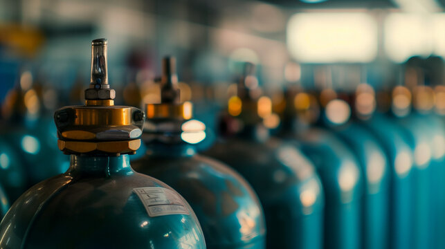 lpg gas cylinder in line ready for filling or delivery