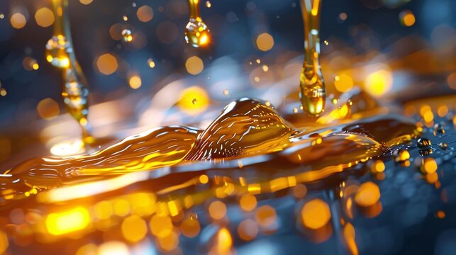 Automotive, Oil wave splashing in car engine with lubricant oil. Concept of lubricate motor oil and gears for engine.