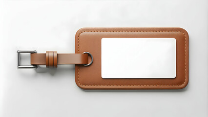Leather Personal Blank Luggage Tag for Promotional Branding, 3d render illustration.