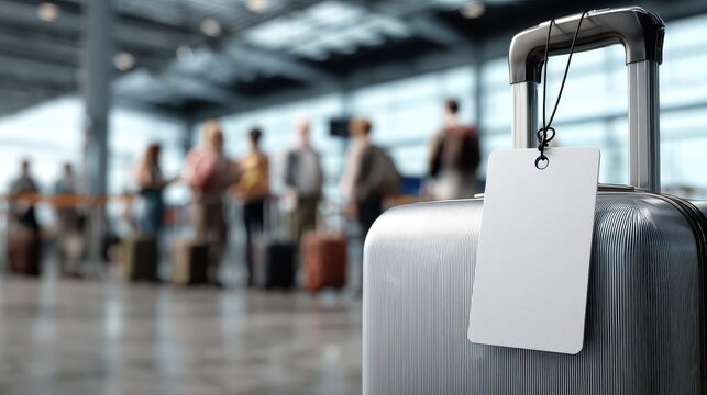 Stylish silver suitcase with vintage leather accents and blank luggage tag awaits exciting travel adventures, perfect for vacation planning and wanderlust inspiration