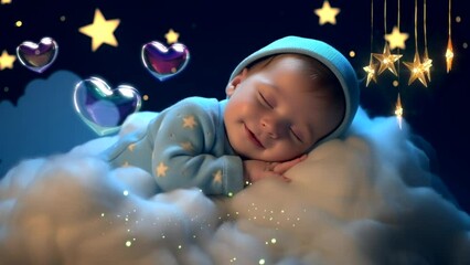 Lullaby For Babies video animation template looping Cute baby sleep at night on cloud with stars, for live wallpaper